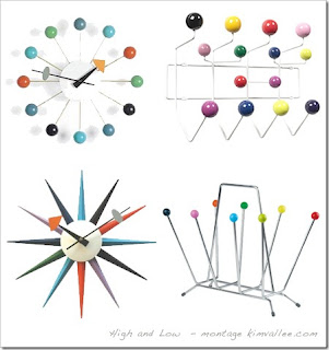 A few examples of Iconic Eames clocks, a coat hook and magazine rack...
